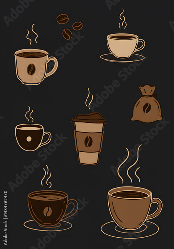 Obraz premium Coffee background. Pattern on minimalistic Background Design. Coffee seamless pattern. Design for cafe, menu or restaurant