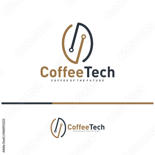 Fototapeta premium Coffee bean logo with data connection. Creative coffee tech logo template...