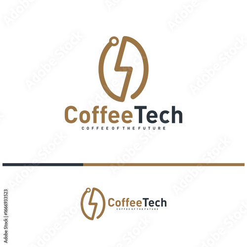 Fototapeta premium Coffee bean logo with data connection. Creative coffee tech logo template...