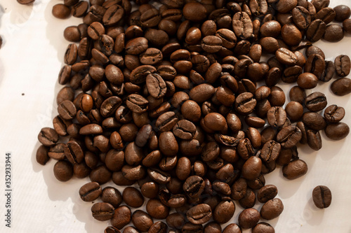 Fototapeta premium coffee beans a lot of coffee scattered on a white background