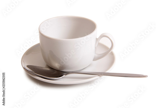 © Николай Григорьев, Obraz premium Coffee beans and cup on white background
