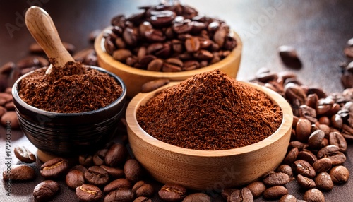 Obraz premium Coffee Beans And Ground Coffee
