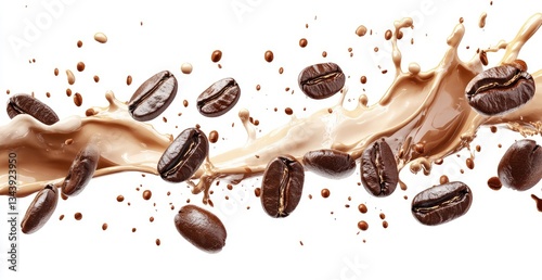 © ASIH, Obraz premium Coffee Beans and Liquid Splashing