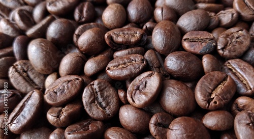 © Oktian07, Naklejka premium Coffee beans background. Close up of roasted coffee beans.