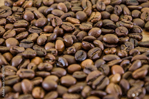 © Tania, Naklejka premium coffee beans background. View from above.