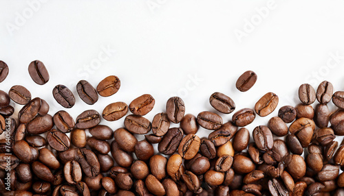 Naklejka premium Coffee beans border: isolated on white background banner, with ample white...