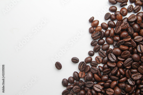 © Endah, Naklejka premium Coffee beans border isolated on white background with copy space