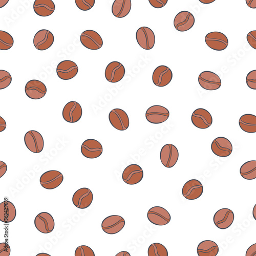 Obraz premium Coffee beans. Cartoon print. Seamless vector pattern (background).