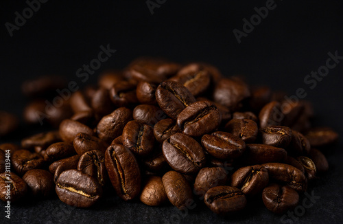 Naklejka premium Coffee beans close up. A fragrant drink for a cheerful day