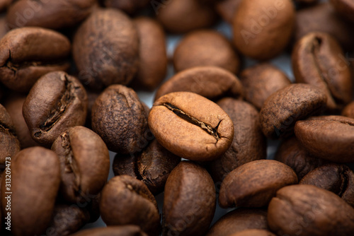 © grthirteen, Naklejka premium Coffee beans close-up background. Fresh roasted