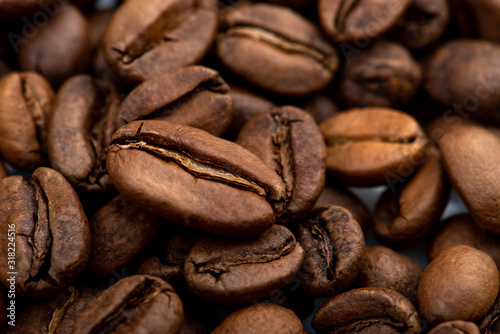 © grthirteen, Naklejka premium Coffee beans close-up background. Fresh roasted