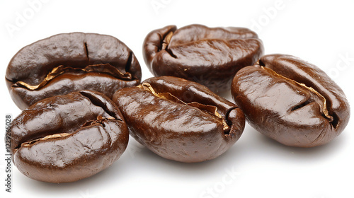 © Volodymyr Shcherbak, Obraz premium Coffee beans close up on white background