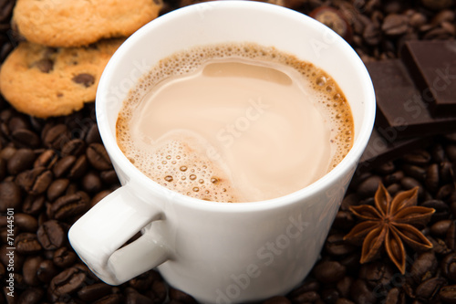 © mizar_21984, Fototapeta premium coffee beans coffee with cream in a cup