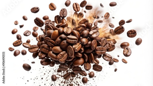 Obraz premium Coffee Beans Exploding Against a White Background