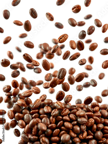 © Rebekah, Naklejka premium Coffee beans falling in the air isolated on a white background. Coffee beans flying.