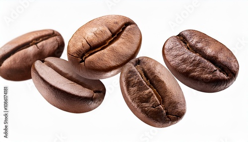 Obraz premium coffee beans floating isolated on white background