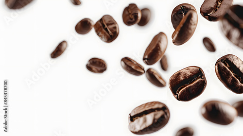 © CanvasPixelDreams, Fototapeta premium Coffee beans floating isolated, white background