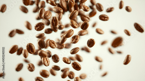 Obraz premium Coffee beans flying in the air in freeze motion.