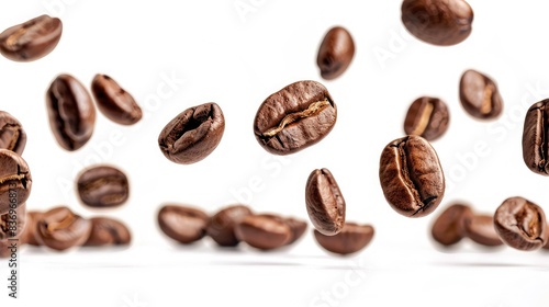 Fototapeta premium Coffee beans flying isolated on white background