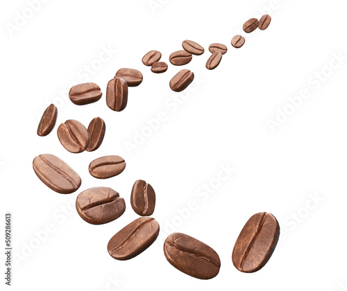 © Anusorn, Naklejka premium Coffee beans flying on a white background, 3d rendering.