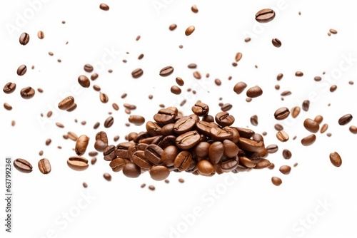 Obraz premium Coffee beans flying over a white background