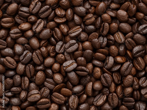 Naklejka premium Coffee Beans Harmony. A Dense Pile of Textured Brown Elements, Natural Pattern