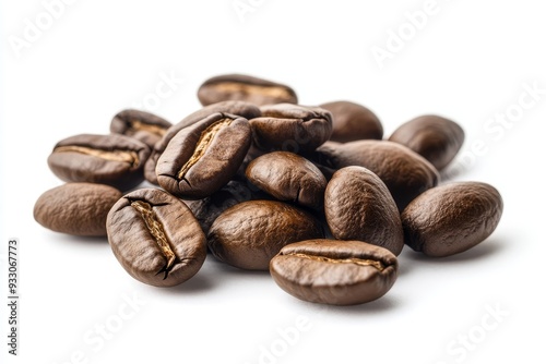 Naklejka premium Coffee beans heap isolated on a white surface detailed close-up shot