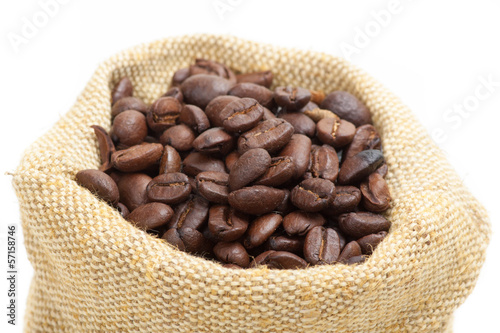 © Vasily Merkushev, Fototapeta premium Coffee beans in burlap sack