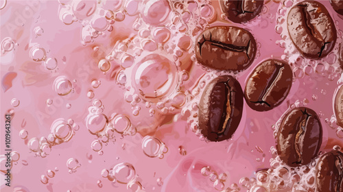 Fototapeta premium Coffee Beans in Pink Liquid with Bubbles