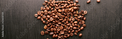 © stenkovlad, Naklejka premium coffee beans in shape of heart on wooden background