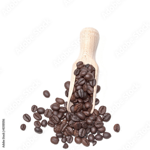 Obraz premium Coffee beans in wood spoon