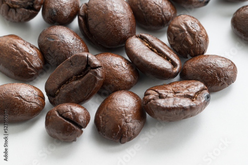 © chendongshan, Obraz premium Coffee beans macro close-up, white background
