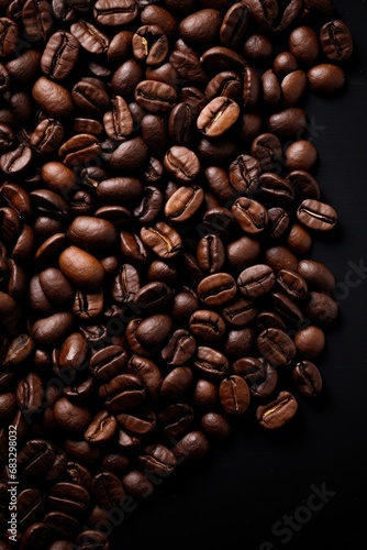© Lubos Chlubny, Obraz premium Coffee beans on dark background, top view