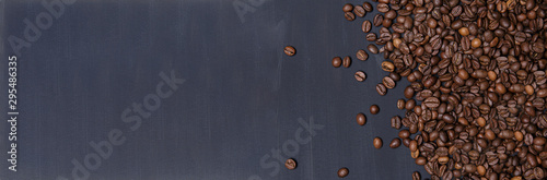 © Vic, Fototapeta premium Coffee beans on navy painted background