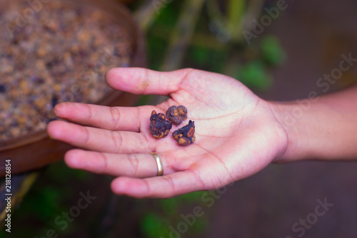 Obraz premium Coffee beans on the tree in Bali, Indonesia. Kopi Luwak is the most expensive coffee in the world, also called as Cat Poop Coffee.