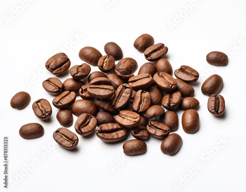 © Koi, Naklejka premium Coffee beans on white background, GenerativeAI, Closeup of coffee bean and space with top view