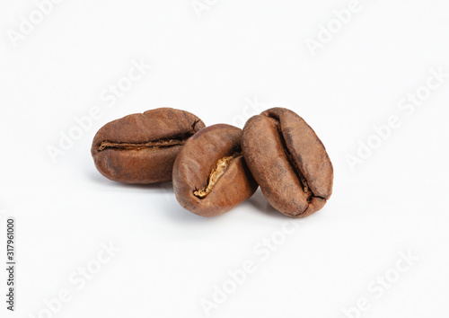 Obraz premium Coffee beans on white background, high resolution, macro.