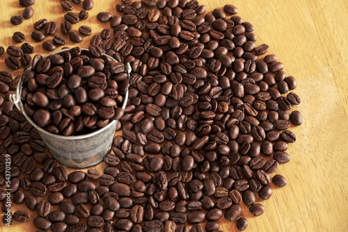 Fototapeta premium coffee beans on wood table. coffee seed