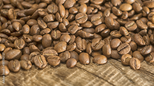 © Georgy, Fototapeta premium Coffee Beans over Wood Background