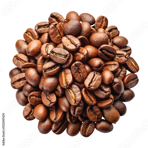 © Yuiziee, Naklejka premium Coffee Beans Pile: A pile of roasted coffee beans, PNG file for mock-up