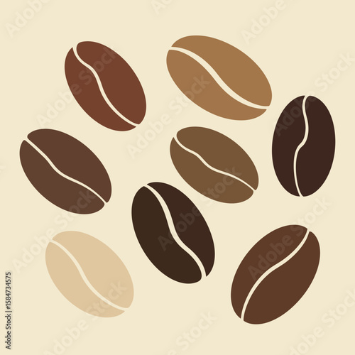 © vectorcorner, Obraz premium Coffee Beans Roasted Brown Flat Icon