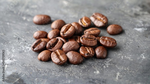 Naklejka premium Coffee beans roasted on a gray surface