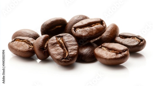 © Kelly, Naklejka premium Coffee beans scattered on a white background, minimal studio lighting generative ai