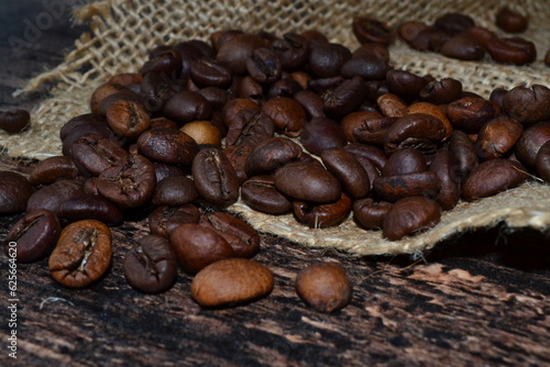 © HannaBg, Fototapeta premium coffee beans scattered on burlap