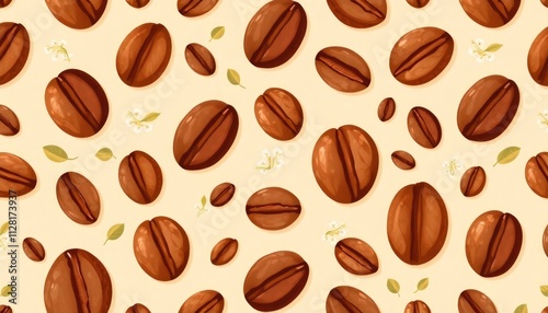© Rahmat , Obraz premium coffee beans seamless pattern
