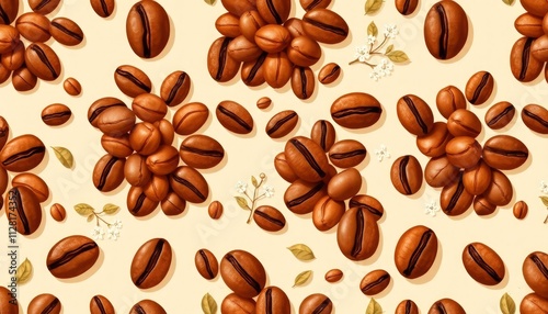 © Rahmat , Obraz premium coffee beans seamless pattern
