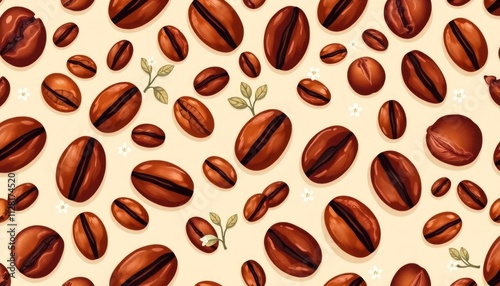 © Rahmat , Obraz premium coffee beans seamless pattern
