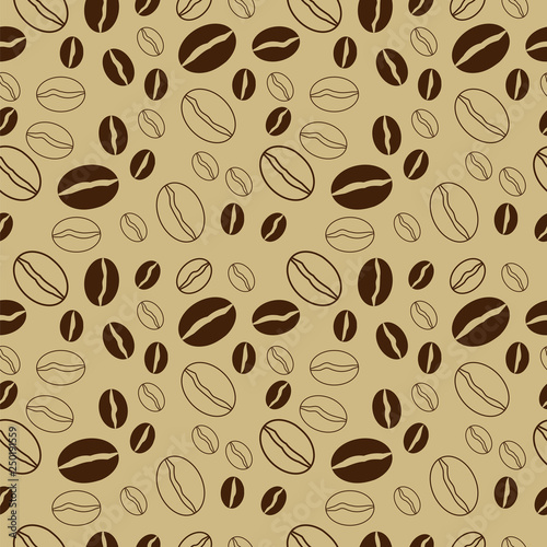 © YULIIA, Obraz premium coffee beans seamless pattern. Brown vector background.