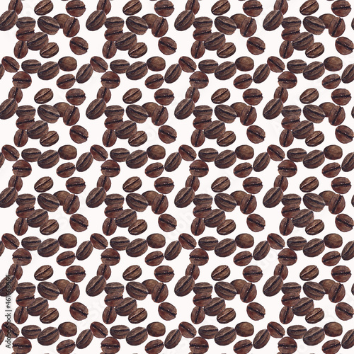 Obraz premium Coffee beans seamless pattern, Hand drawn coffee texture, Repeated watercolor beans on white background, for wrapping, menu, cafes, textile, printing