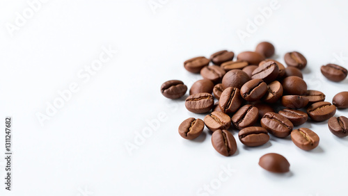 © Galeno, Naklejka premium coffee beans sit plain white surface surrounded empty space perfectly capturing texture